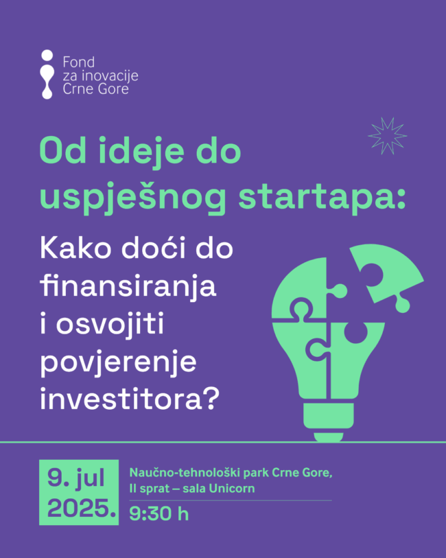 Panel „Od ideje do uspješnog startapa: Kako doći do finansiranja i osvojiti povjerenje investitora“ održaće se u srijedu 9. jula 2025. godine u Naučno-tehnološkom parku Crne Gore, u sali Unicorn na II spratu, sa početkom u 9:30 časova. Organizujemo panel diskusiju s ciljem da startup osnivačima pružimo praktične uvide i konkretne savjete iz prve ruke…